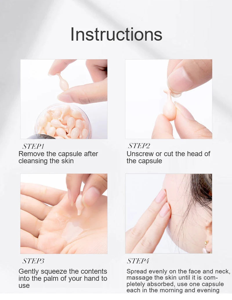 3. Aplicación: Mezclar el contenido de la cápsula con tu crema facial favorita.