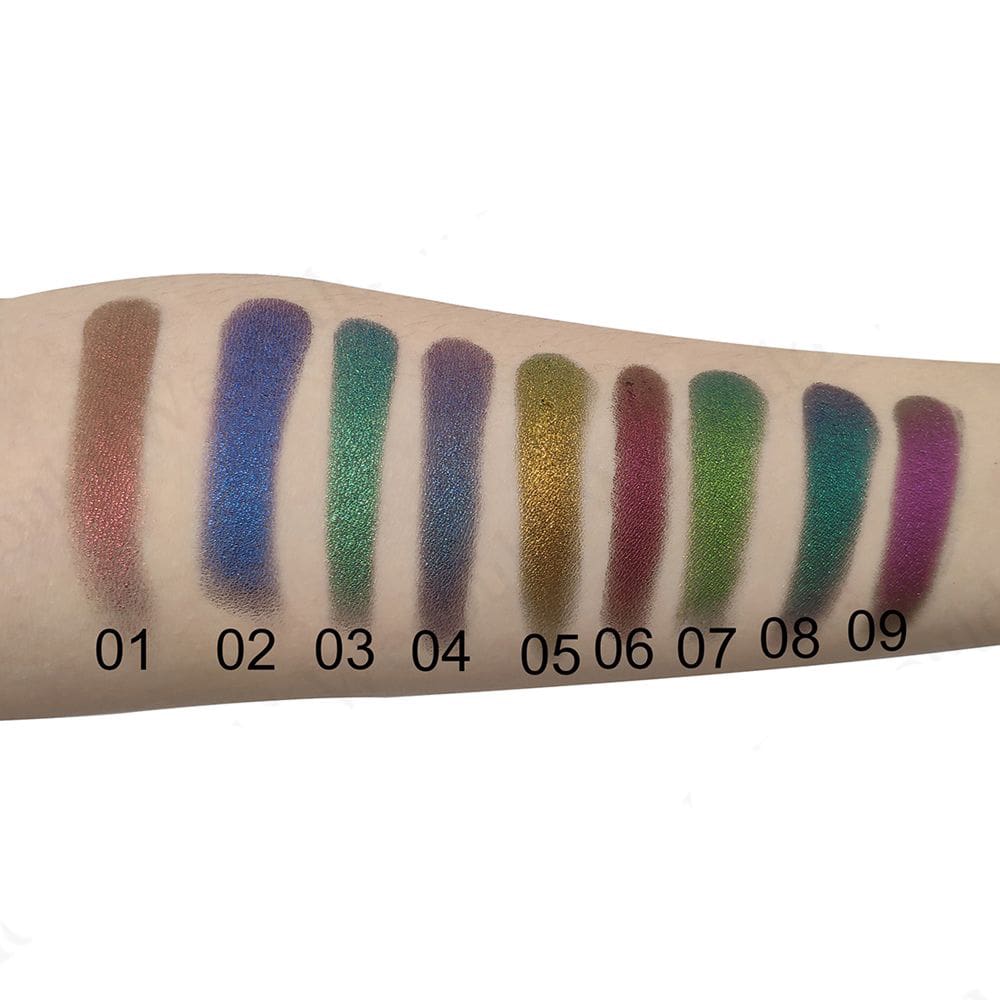 Estamos comprometidos a brindarles a nuestros clientes productos de calidad, razón por la cual estas sombras de ojos duocromáticas están hechas con los mejores materiales . Por ello son resistentes al agua y extremadamente duraderas, por lo que mantendrán su color intenso durante todo el día sin ningún problema. Además, estos productos vienen en un práctico estuche de forma redonda y compacto, para que puedas llevarlo a cualquier parte. La mejor parte es que se trata de un estuche resistente que protegerá el producto, además de mantenerlo impecable y hacer que dure más.Duochrome Eyeshadows pigmentos prensados hechos con materiales veganos