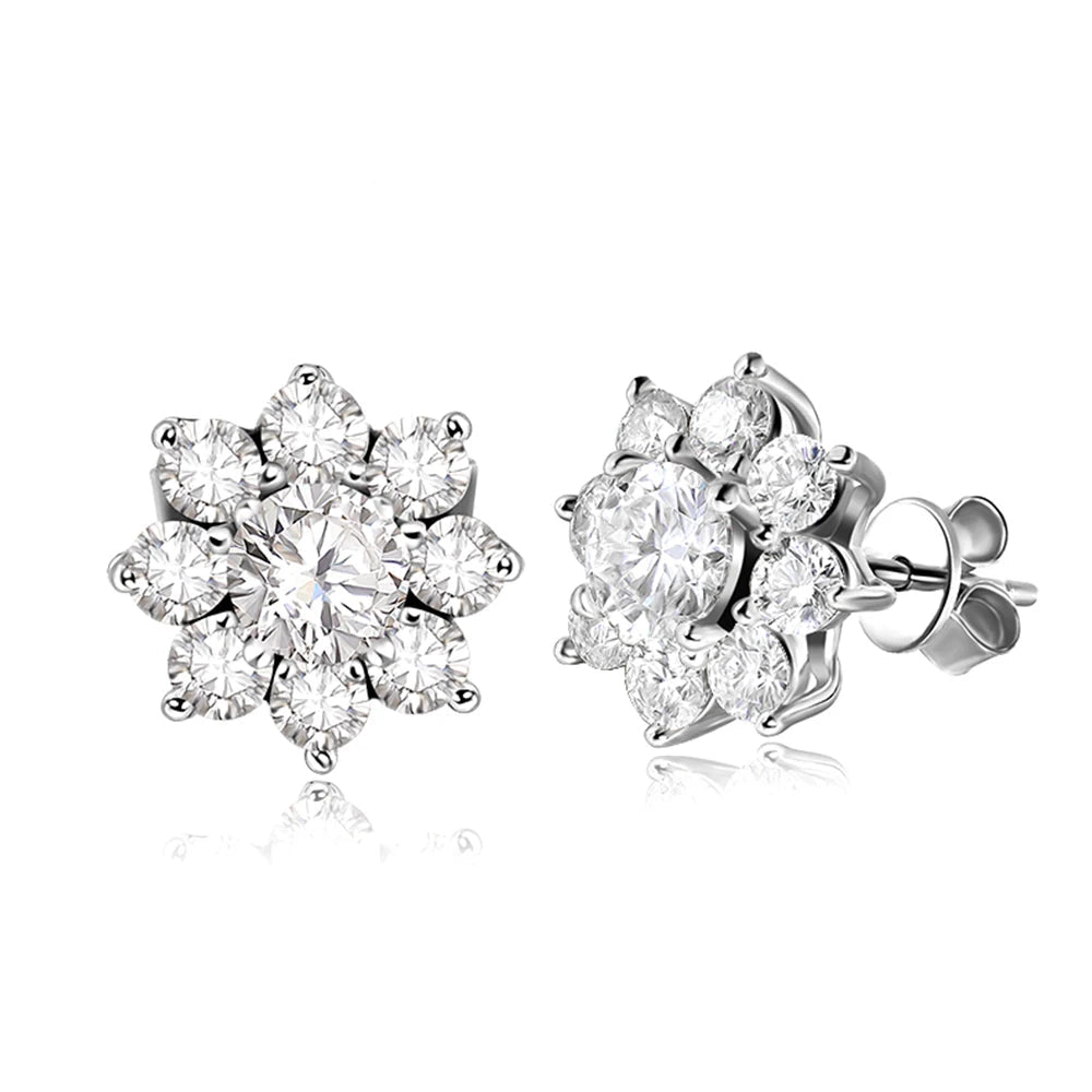 Pendientes de Moissanita | Corte Corazón y Flechas Redondos | Plata 925 + Oro Blanco 18K ✨ Brillo Excepcional con el Corte de Moissanita Más Fino ✨