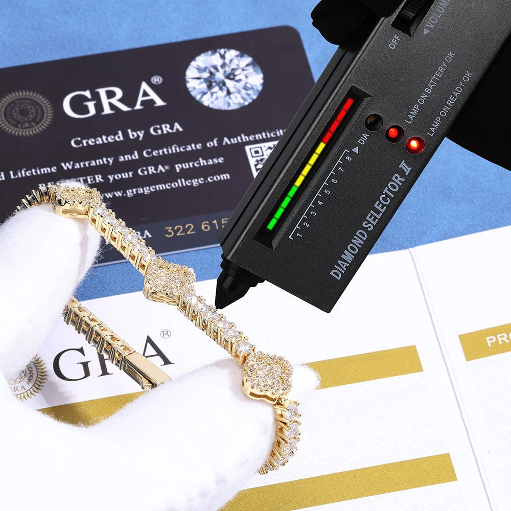 Descubra la pulsera de tenis más codiciada, donde el símbolo de la buena fortuna se fusiona con el excepcional brillo de la moissanita. Con un diseño único de trébol de cuatro hojas, esta joya combina un significado especial con el lujo del color D (máxima claridad) y las piedras con claridad VVS1, superando el brillo de los diamantes tradicionales.