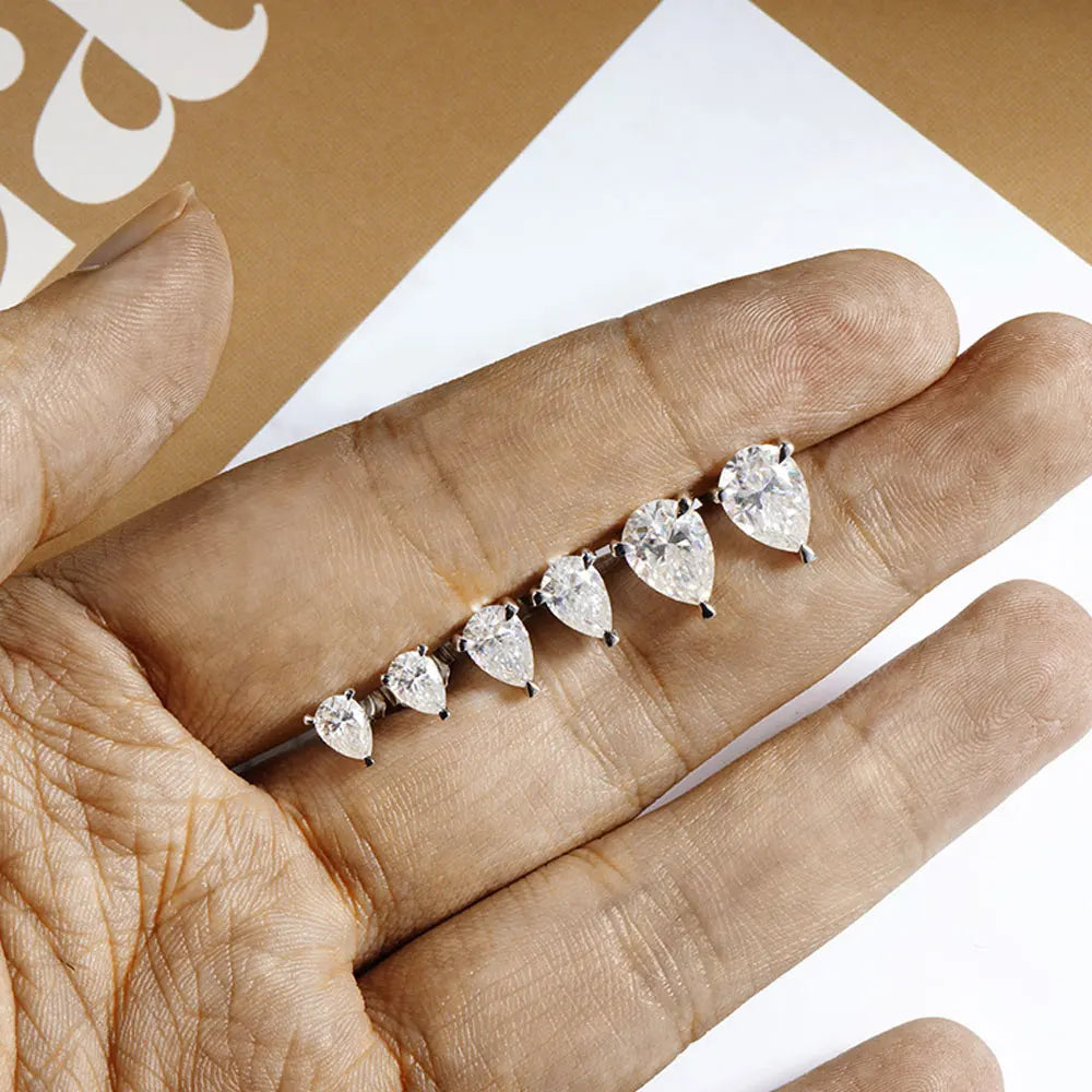 Descubra nuestros pendientes de moissanita, diseñados para quienes buscan joyas finas, duraderas y deslumbrantes a un precio asequible. Con un corte pera impecable y color D (el más blanco y puro), estas joyas superan en brillo a los diamantes tradicionales gracias a la moissanita de grado VVS1, sin inclusiones y con un brillo inigualable.