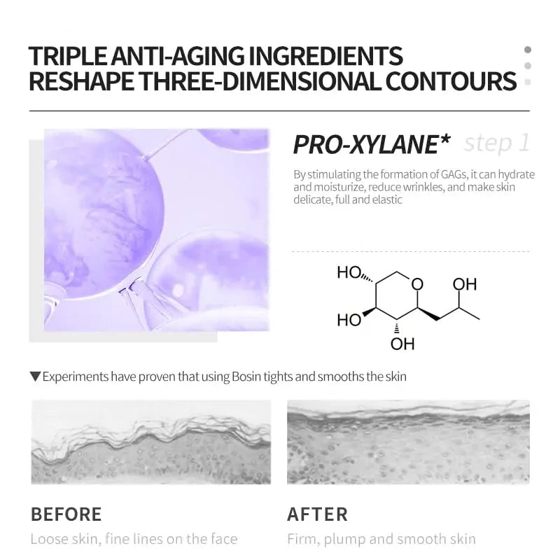 2. Fórmula única y revolucionaria: combina Pro-Xylane y retinol, dos de los ingredientes más poderosos en el cuidado de la piel, que trabajan en sinergia para combatir el envejecimiento.