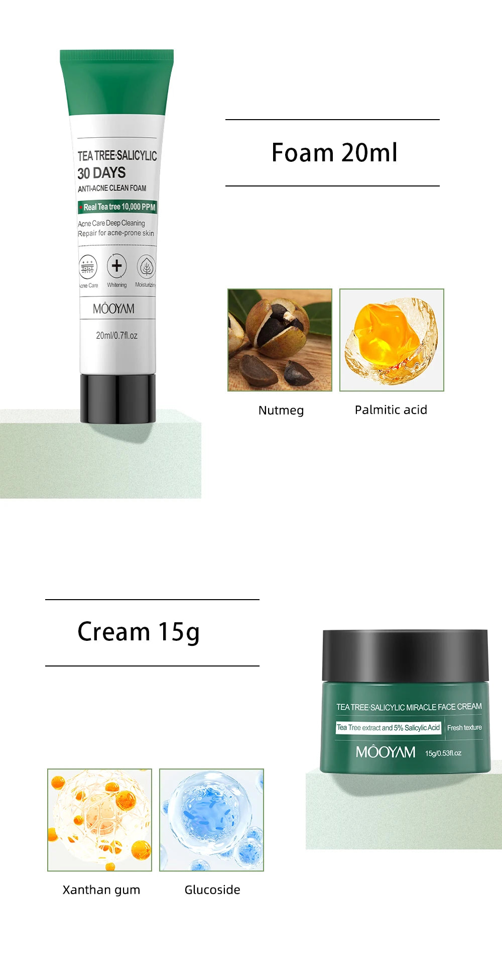 Set de cuidado de la piel antiacné 30 días con aceite de árbol de té y ácido salicílico