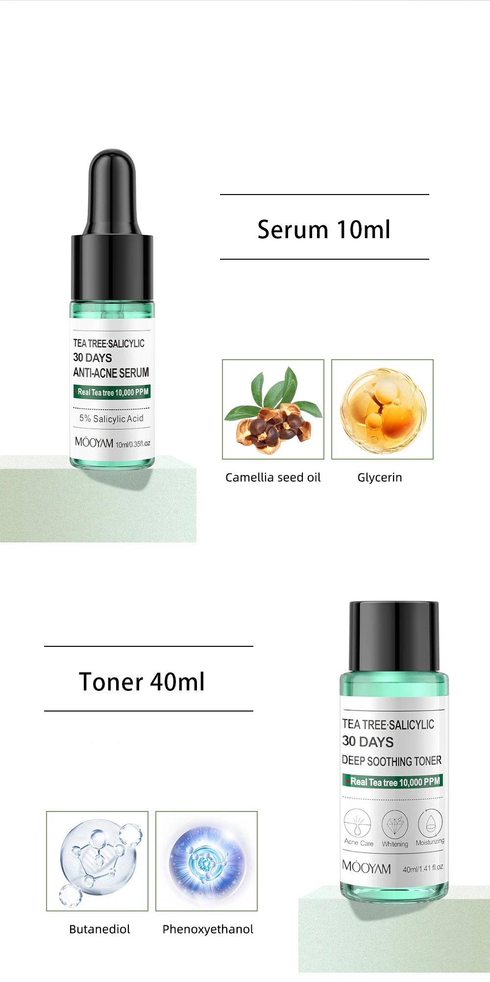 Con un uso regular durante 30 días, este set antiacné transforma la piel, dejándola visiblemente más clara, suave y radiante. Es adecuado para todo tipo de pieles, incluidas las más sensibles.