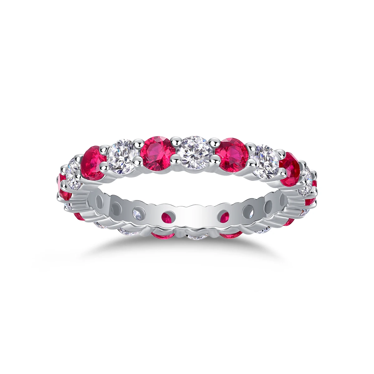 S925 Sterling Silver Ring with Moissanite and Rubies, 18K Gold Plated – GRA Certified