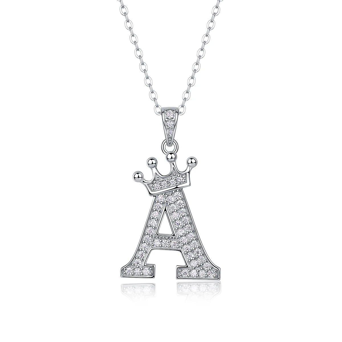 Moissanite Crown Alphabet Letter Pendant Necklace in 18K Gold Plated 925 Silver – 26 Letters Available
